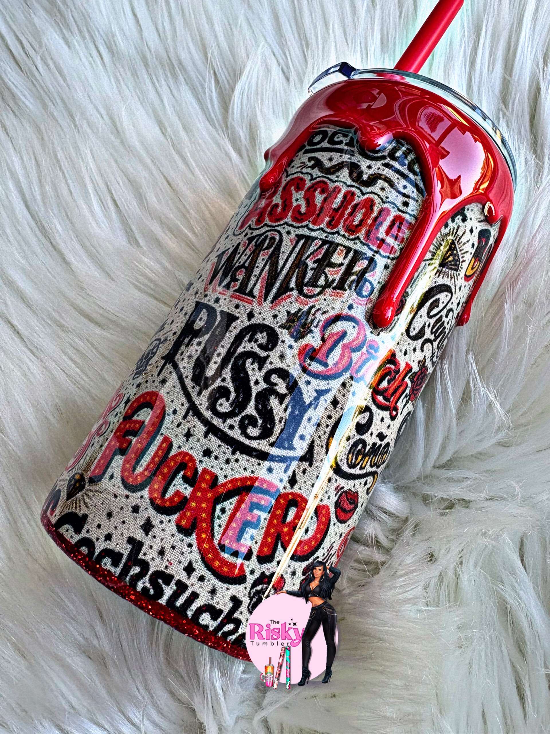 16oz adult words tumbler.. Sealed with epoxy. Fabric Tumbler